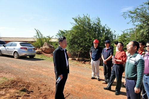 俞浩副院长强调,本项目主要是在由我院承担的现代农业产业技术体系生猪综合试验站基础上,对各类猪舍进行改扩建,配套建设综合业务用房以及相应的粪污处理设施、围墙等;购置产床、仔猪培育网床、沼气生产使用设备及配套设施设备;并引进适量种猪。通过项目实施,扩大滇陆种猪选育扩繁规模,优化滇陆猪品种,年出栏规模由现在的1000头增加到3000头以上,其中出栏后备种母猪1000头以上,商品猪2000头以上,为我省生猪产业化发展提供优质种猪。本项目建筑面积为1618平方米,经过政府采购、公开招投标等法定程序,项目已经具备施工条件,明确了施工方,项目今天正式开工建设了。