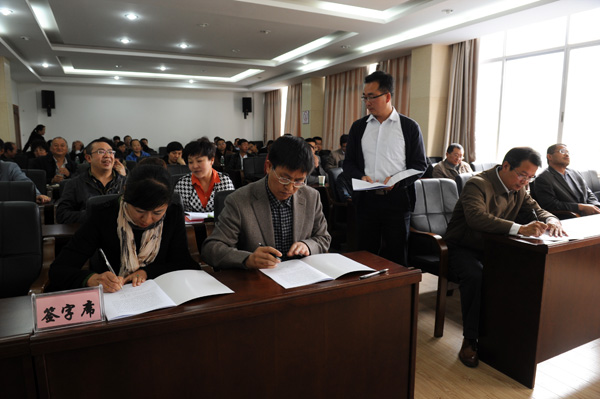 会议最后,崔金赋书记、李永忠校长分别与分管校领导,行政部门、二级学院签订了2015年党风廉政建设责任书。(党委宣传部供稿)