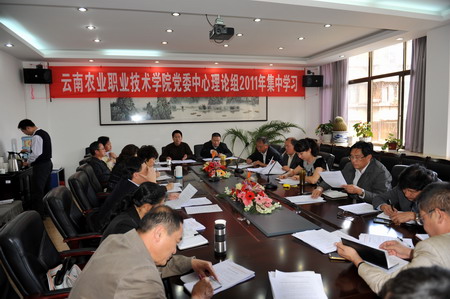 2011年10月26日下午,学院党委中心组在茭菱校区四楼会议室开展了内容丰富的集中学习活动。党委书记崔金赋、院长彭志远、党委副书记赵刚、副院长赵莉、院长助理田应华,以及党(院)办、组织部、宣传部、纪检监察审计处、对外合作交流处、学生工作处、院团委、基础部等部门负责人、园艺与园林工程系等四系部党总支书记出席。崔书记主持会议。