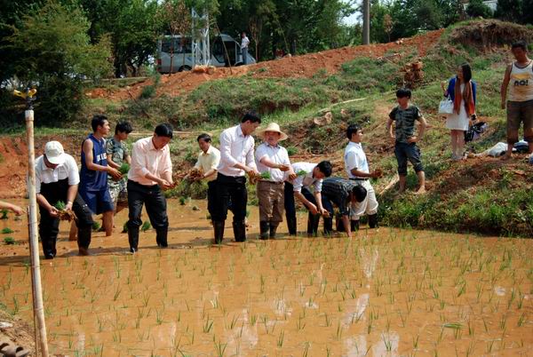 为更好地推广“粮食高产创建的科研与实践工作”,推动水稻科研项目的开展,同时推进相关专业实践教学的需求,园林与园艺学院开展了历时一天的水稻插秧活动。
