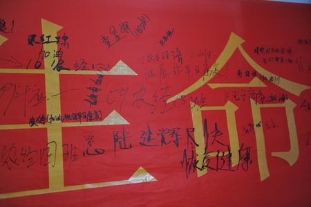 经过学院全体师生的努力,治疗费用得到了暂时的解决,虽然这笔钱比起所需的全部治疗费用相差甚远,但代表了全院师生对患病学生的关心和祝福。让我们祝愿陆建辉同学的身体早日康复,争取早日回到学院这个爱的大家庭中,同时也对陆爸爸的无私父爱,致以崇高的敬意!