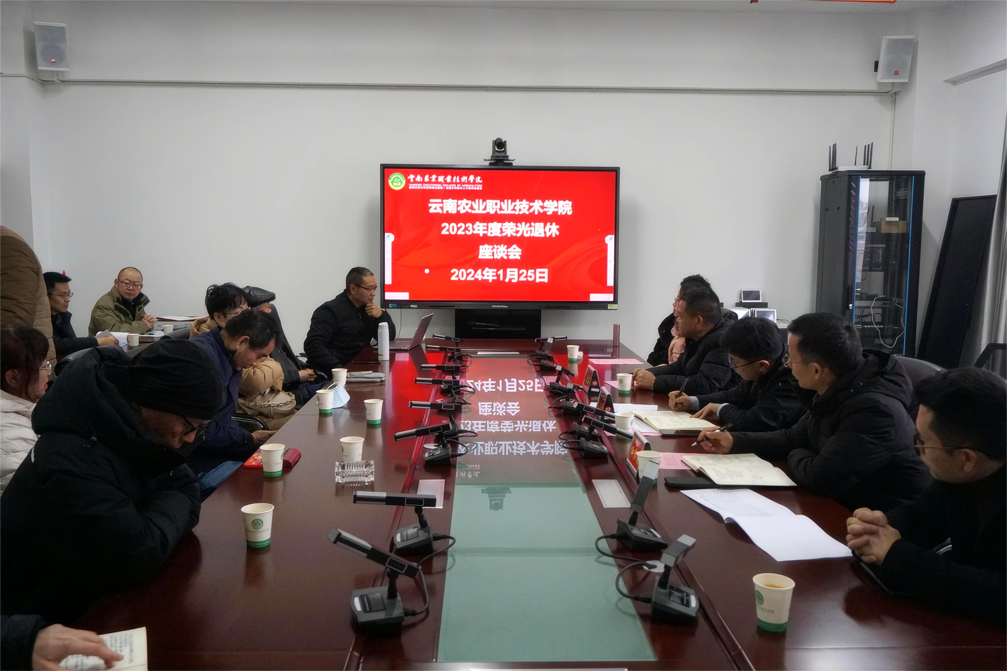 通知中心一支粉笔,两袖清风,三尺讲台,四季晴雨。为体现对退休教师们的关心关怀,表达对退休教师们的崇高敬意,1月25日,学院在茭菱校区举办2023年度荣光退休教师座谈会,学院院长陈太安出席会议并讲话,学院党委副书记伍学龙主持座谈会。办公室、组织部、宣传部、人事处、工会、离退休人员服务办公室负责人参会。