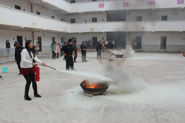 最后,同学们又在消防灭火的讲解演示中,集体学习了火灾发生时的注意事项、逃生技巧以及灭火器的使用方法,宿管员、保安、学生代表使用灭火器亲身体验如何灭火。