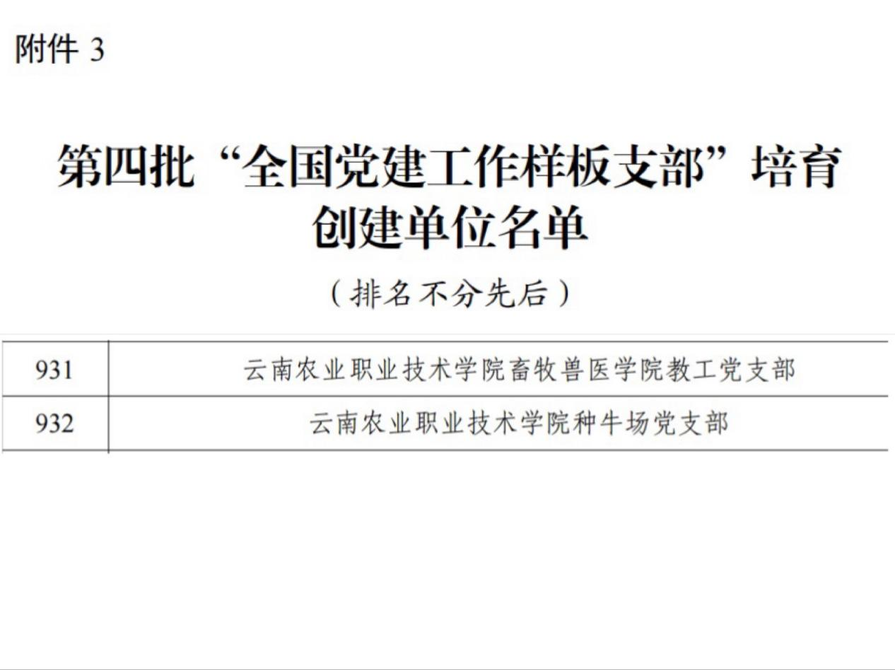 通知中心近日,教育部公布第四批新时代高校党建示范创建和质量创优工作遴选结果,伟德官网畜牧兽医学院教工党支部、种牛场党支部入选“全国党建工作样板支部”培育创建单位,实现党建工作新突破。