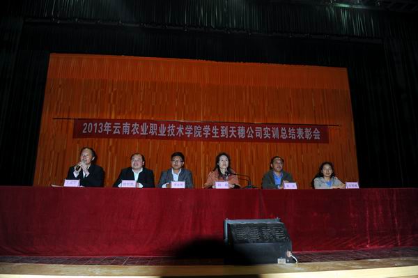 最后,昆明天穗农资有限公司总经理张宏详细介绍了2013年生物工程系在天穗顶岗实习学生的工作情况和业绩,对116位参加实习的学生进行了表彰。向参加大会的全体同学介绍了天穗的企业文化、详细说明了天穗的业务发展情况,热情地向即将毕业的学生伸出了橄榄枝。
