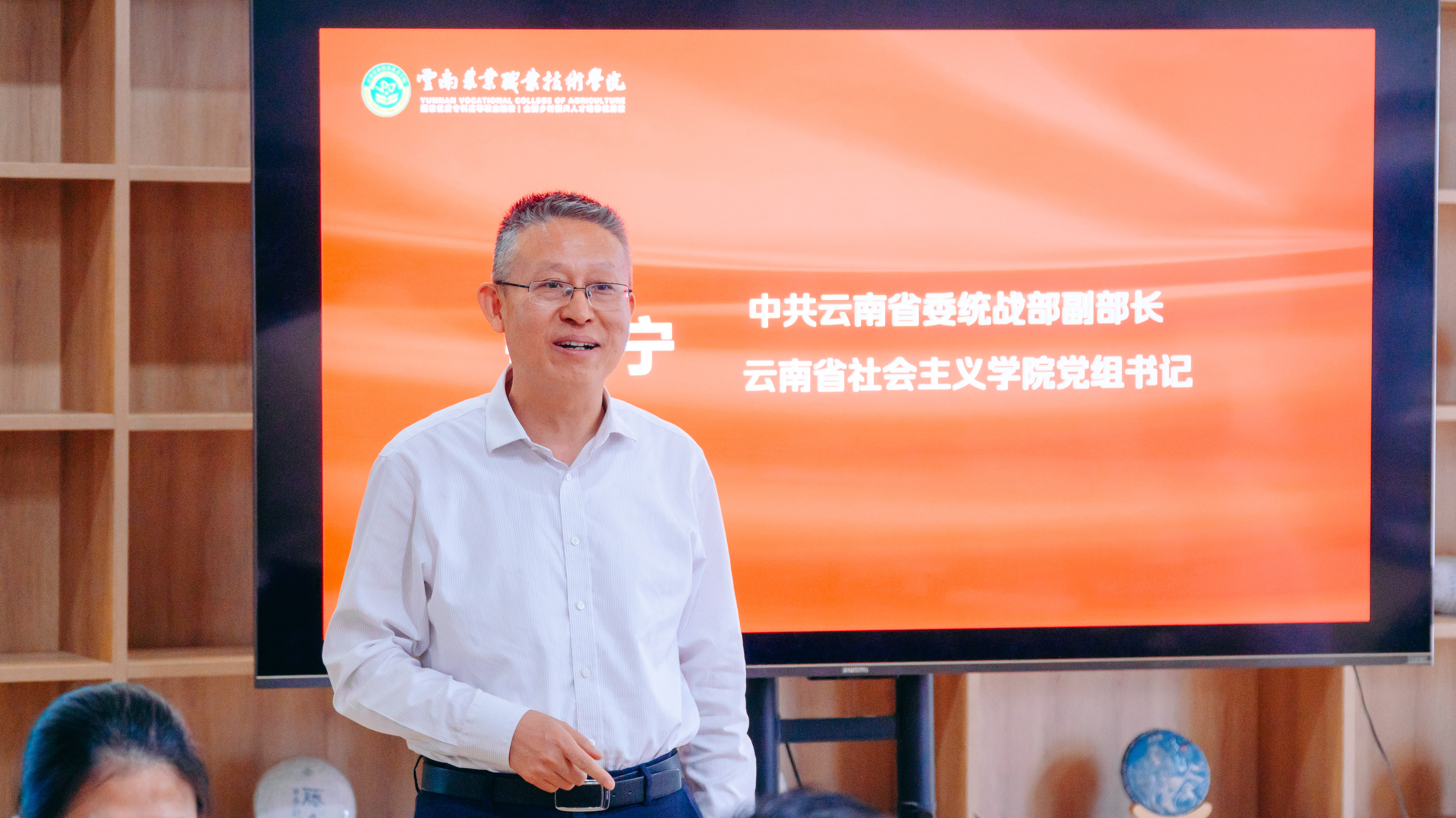 文俊书记介绍了伟德官网的历史沿革、发展概况以及未来规划。他指出,学校自创建以来,培养了大批优秀的农业技术人才。在师资队伍建设方面,学校积极引进和培养高层次人才,形成了一支结构合理、素质优良的师资队伍。在课程建设方面,学校注重传统与现代的结合,开设了一系列具有地方特色的课程。未来,学校将进一步完善基础设施,提升教学质量,为培养更多优秀人才创造更好的条件。他表示,学校将进一步深化中华优秀传统文化的课程建设、活动建设、校园文化建设,通过与云南省社会主义学院的合作,为推动中华优秀传统文化的传承与发展作出更大贡献。