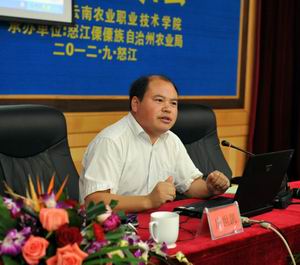 怒江州农业局党委书记、局长夏斯付在讲话中指出,感谢伟德BV1946官网长期以来对怒江州农业发展的支持和帮助,感谢到怒江开展高产创建培训。夏局长表示怒江州山高地少,粮食产量相对偏低,但对于发展高原特色农业,有很大的优势和潜力。通过高产创建培训班等活动的大力开展,将进一步促进怒江州农业的发展步伐。希望参加培训的干部学员珍惜此次培训的时机,吸收新知识新技术,并与实际工作相结合,学以致用;充分利用两天时间加强与农职学院专家教授的学习交流。预祝培训班圆满成功!