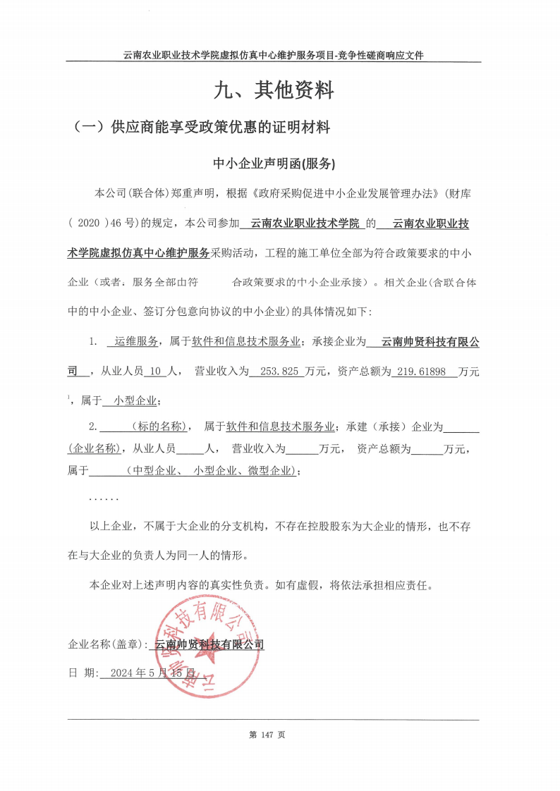 供应商名称:云南帅贤科技有限公司