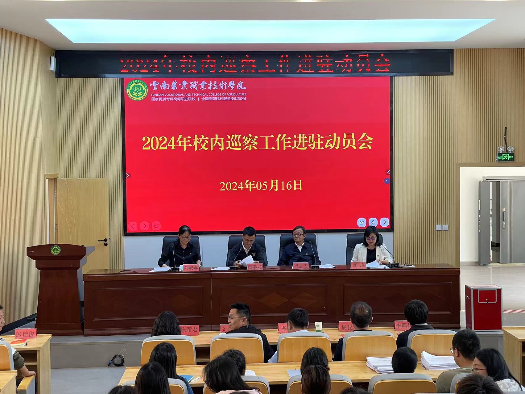通知中心根据党委安排部署,2024年校内巡察工作巡察组分别于5月15日进驻云安产业学院党总支,5月16日进驻互联网技术学院党总支、基建办公室、保卫处、继续教育与培训学院、云南省农学会秘书处(《云南农业》编辑部)、云南省农业标准化技术委员会秘书处,分别召开了巡察工作进驻动员会。学院党委书记文俊同志,党委副书记伍学龙同志,纪委书记冯志宏同志,党委巡察办负责人,巡察组全体成员以及被巡察党政部门全体教职工和学生代表参加会议。会议分别由互联网党总支书记胡琼同志、云安产业学院党总支书记李一源同志主持。
