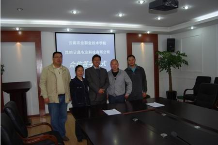 2011年3月8日,园艺与园林工程系主任许邦丽与日晟公司总经理助理邓文祥在校企合作协议书上正式签字。院长助理田应华、园艺与园林工程系副主任陈志远等领导参加了签字仪式,双方就当前及未来的合作框架及项目进行了深入的探讨和展望。