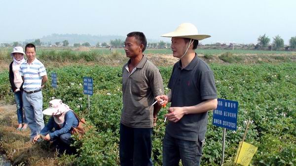4月26日,云南省现代农业马铃薯产业技术体系首席专家杨艳丽教授带队,产业经济研究室岗位专家张德亮教授、栽培技术研究室岗位专家海梅荣副教授等一行8人,就石屏冬马铃薯试验站工作和冬马铃薯示范基地的生产情况、病虫害发生情况进行现场调研指导。在伟德BV1946官网马铃薯试验站站长王孟宇、石屏农业与科技局李红艳副局长、石屏县异龙镇李渊副镇长陪同下,调研指导组深入石屏县高家湾、豆地湾村委会冬马铃薯生产基地,现场检查试验站工作,与农户进行交流,全面指导石屏冬马铃薯生产。