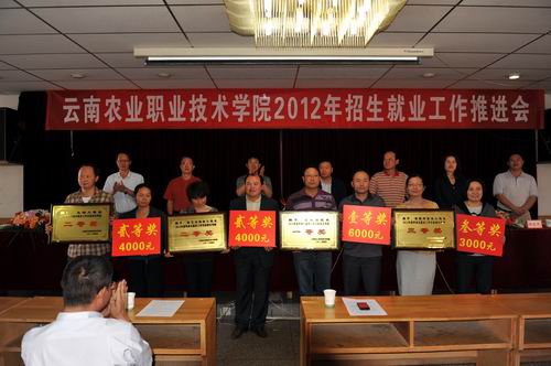 大会认真听取了俞浩副院长作的大会主题报告《凝心聚力 真抓实干 着力推动招生就业工作再上新台阶》。俞浩副院长在报告中全面回顾了我院2011年度招生就业所取得的成绩,招生人数突破了2000人大关;就业工作成绩令人鼓舞,2011年我院毕业生初次就业率97.5%,年终就业率98.4%,首次获得云南省委高校工委、云南省教育厅颁发的“2011年高校毕业生就业工作目标责任考核一等奖”、“云南省2011年鼓励大学生创业先进集体”荣誉称号。俞副院长全面总结了取得可喜成绩许多行之有效的经验和好的做法。在充分肯定成绩的同 时,俞副院长也指出在新的形势下,我院招生就业工作面临的一些困难和挑战,需要全院上下认真对待;提出了应对严峻形势和困难的总体思路和措施。俞副院长最后指出,保证招生人数、提高就业质量是我们的目标,我相信,只要大家积极地参与进来,凝心聚力、真抓实干,2012年的招生就业工作一定能再上新台阶,取得新成效。