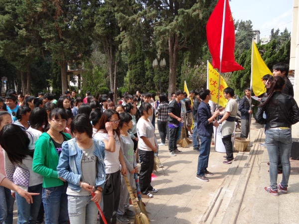 活动开始前,系学生会主席团、各部门部长以及各社团成员、各班代表拿着各自的工具齐聚于学院教学楼前。系学生会主席团首先对本次活动做了安排,把整个校园划分为教学楼、宿舍、篮球场等几个板块。大家在各自负责人的带领下,热情高涨、认真细致地开始清洁卫生大扫除,每一片瓜果纸屑、每一个水沟角落都不放过。经过大家一中午的努力,校园环境焕然一新,不少路过的老师、同学纷纷发出了赞扬之声。