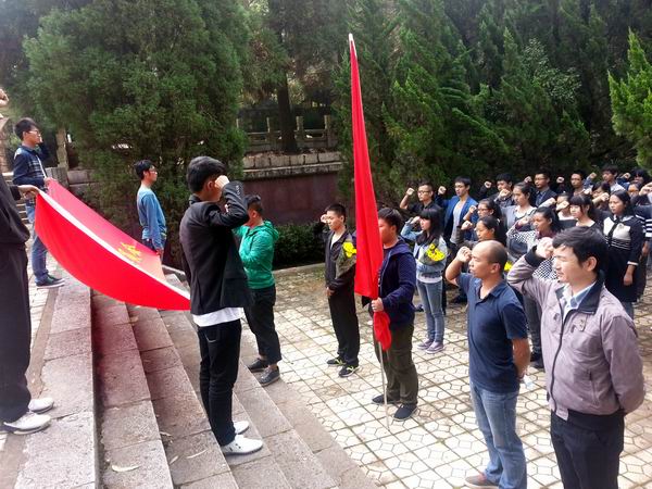 2014年8月31日第十二届全国人民代表大会常务委员会第十次会议决定将9月30日设立为烈士纪念日。为贯彻落实中央有关文件及《共青团中央在青年中广泛开展“庆祝新中国65华诞青春践行社会主义核心价值观”主题活动的通知》精神,引导大学生缅怀烈士功绩、弘扬烈士精神,培养大学生的爱国主义、集体主义精神和社会主义道德风尚,培育和践行社会主义核心价值观,伟德BV1946官网共青团在昆明北郊黑龙潭公园开展纪念王德三烈士活动。参加活动的有院团委副书记何桥和团委老师们,以及学校青年团员代表。