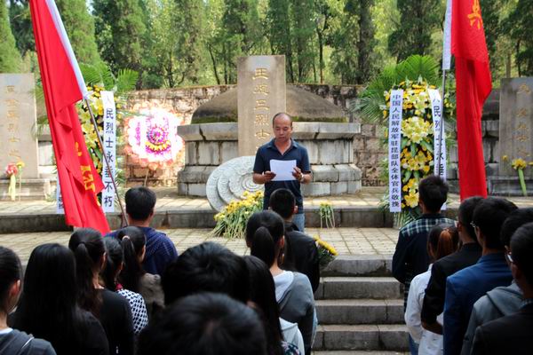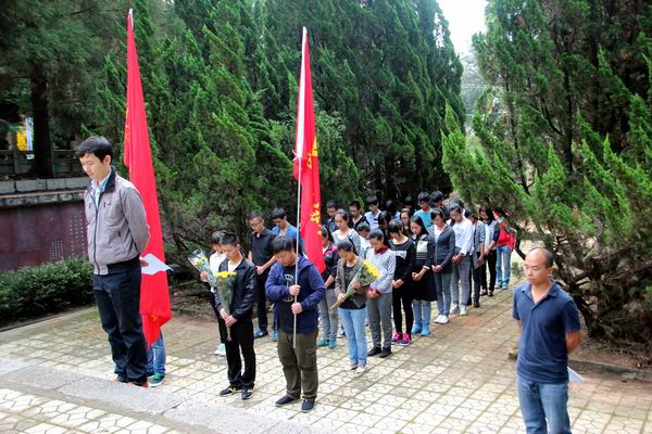 2014年9月30日早晨,大家怀着无比激动的心情来到昆明北郊黑龙潭公园王德三烈士墓地,缅怀纪念他为党的事业、人民的解放作出的卓越贡献,缅怀他在伟德官网担任教师留下的光辉遗迹,学习王德三烈士在艰苦革命斗争中所表现的崇高精神和优秀品德,畅想先辈给云南农职学院增添的骄傲与自豪。