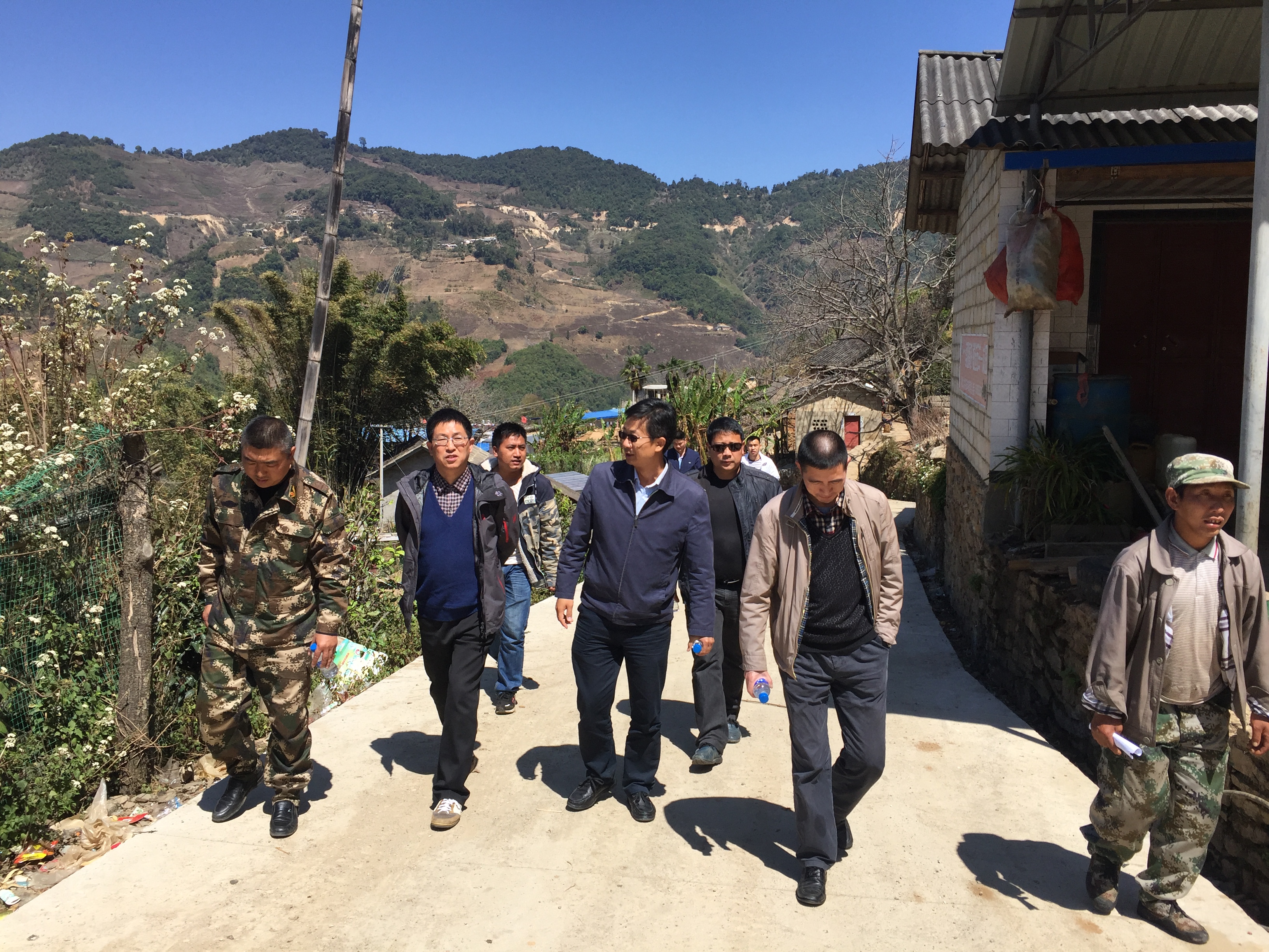 在耿马县领导陪同下,崔书记一行步行前往慰问联系户