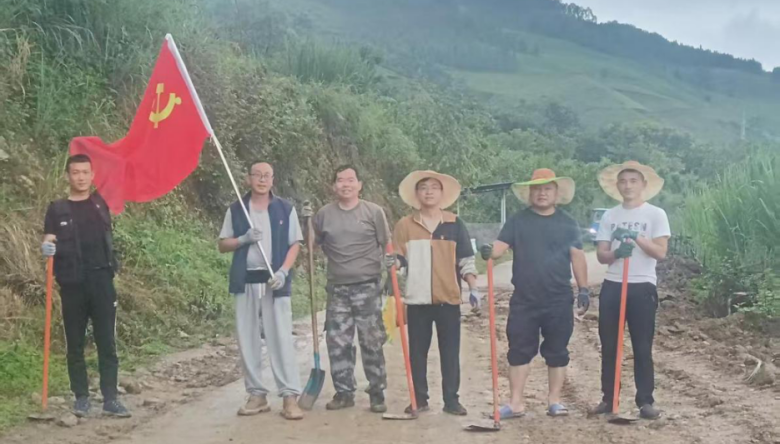驻村工作队与村两委成员抢修保通大美路