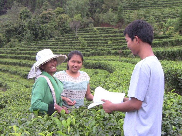 8月9日上午服务团师生们来到班母村进村入户体验生活,并参观了茶场,同时给村民们送去了猪场防疫、作物种植及禁毒防艾等宣传资料。志愿者们和村民交流融洽,亲如一家。