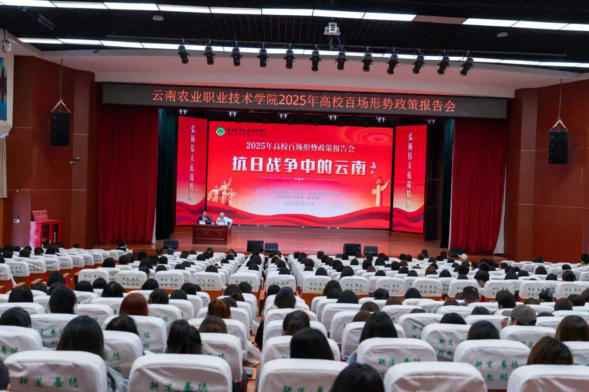 通知中心为进一步深入学习习近平总书记在纪念中国人民抗日战争暨世界反法西斯战争胜利八十周年大会上的重要讲话精神、学习贯彻习近平总书记关于中国人民抗日战争暨世界反法西斯战争的重要论述,9月10日,伟德官网在小哨校区蚕桑礼堂召开2025年高校百场形势政策报告会暨《抗日战争中的云南》大思政课专题讲座。本次讲座特别邀请云南师范大学教授,云南省中国近代史研究会名誉会长吴宝璋担任主讲,带领师生重温抗战岁月中云南军民的英勇事迹与卓越贡献。会议由学校党委书记文俊主持。