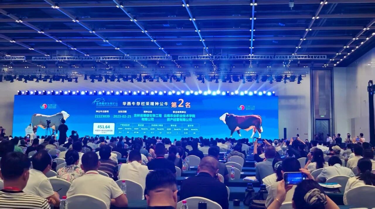 论坛发布了生猪、奶牛、肉牛遗传评估优秀种畜,伟德官网种畜技术研发中心自主培育的种公牛凭借卓越的遗传品质和综合性能,在全国种公牛遗传评估中脱颖而出,一举包揽华西牛基因组选择指数(GCBI)第1名、第2名,西门塔尔牛选择指数(CBI)第1名的优异成绩,充分彰显了云南在现代畜禽种业创新领域的强劲实力与深厚积淀,为构建具有中国特色的现代肉牛种业体系贡献了可复制、可推广的“云南经验”。