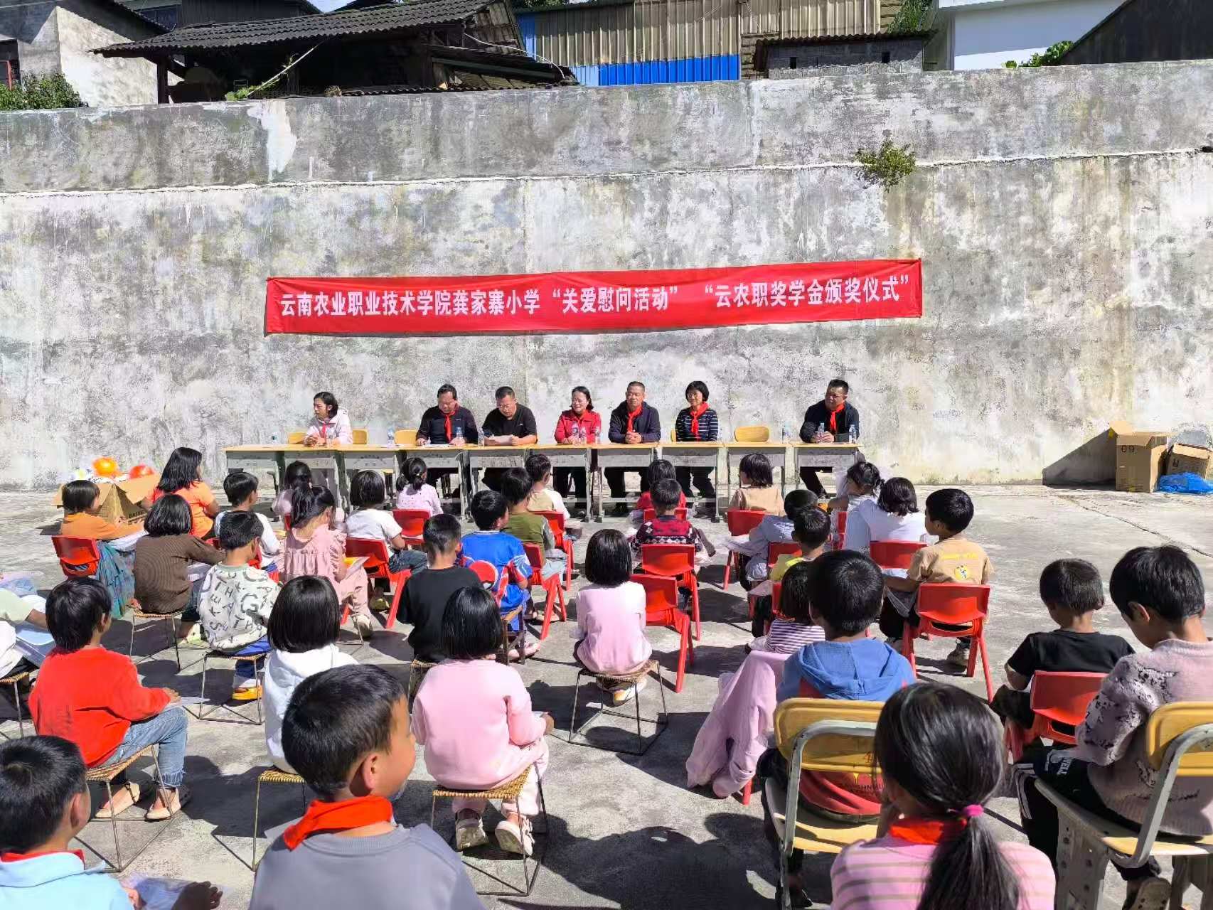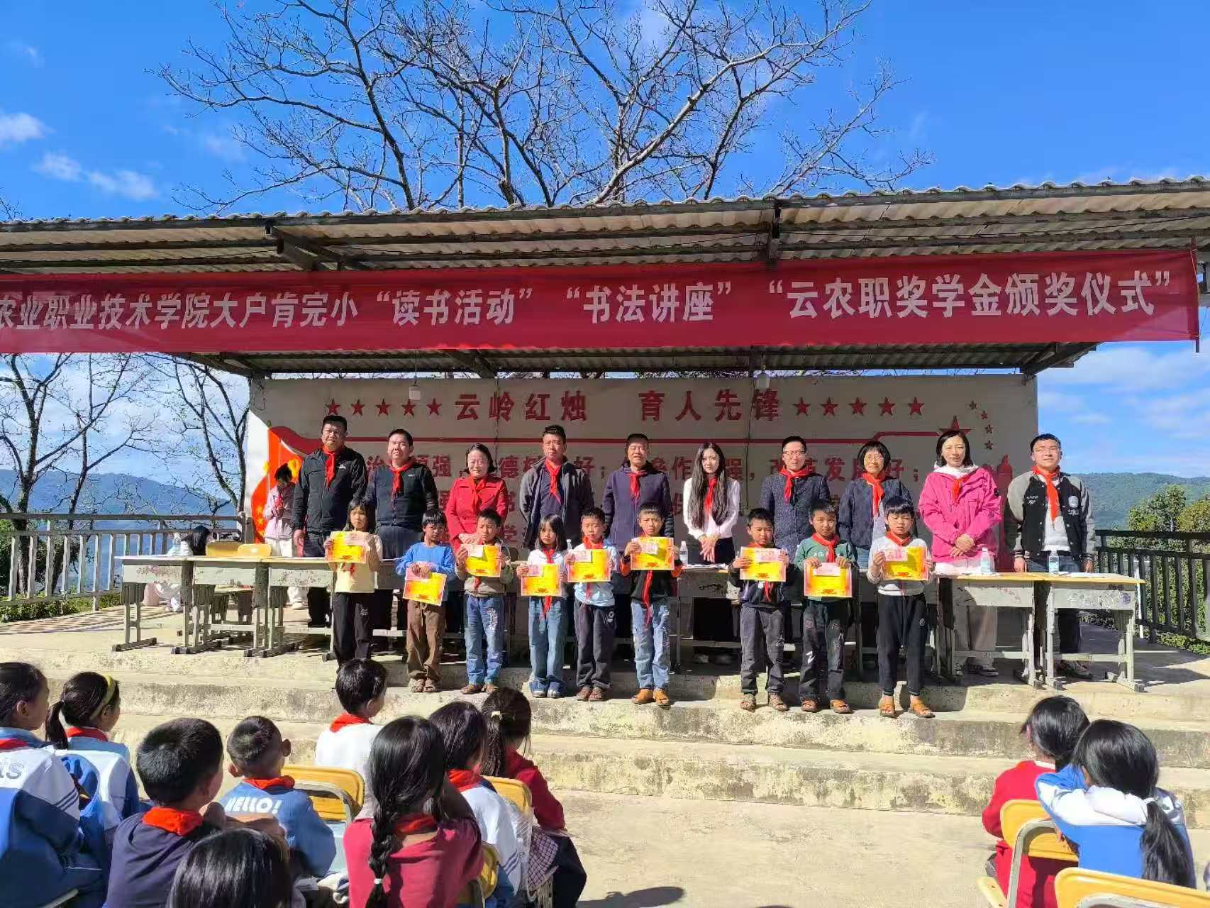慰问团在大户肯完小、龚家寨小学、那卡爬小学等学校,开展了“读懂中国”主题读书、书法文化传承、健康宣讲等活动,为学生们送上学习文具,并为品学兼优的学生颁发了“云农职奖学金”,将关爱与知识送到未成年人身边。在龚家寨卫生院,随行医务人员开展义诊服务,为村民提供常见病诊疗与健康咨询;村委会现场,专家团队结合当地产业实际开展种养殖技术培训,为村民增收致富提供技术支撑。