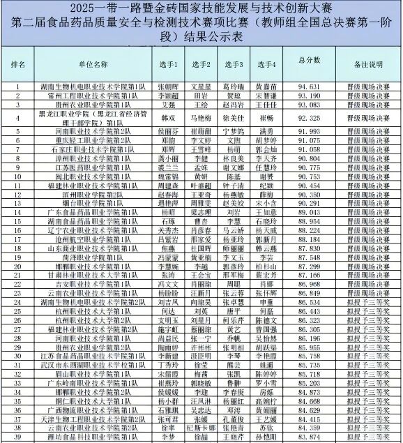 本届食品药品质量安全与检测技术赛项首次专设教师组竞赛,采用两阶段赛制,以团体赛形式全面考查教师的专业技术能力、教学创新水平和团队协作素养。决赛第一阶段共有来自全国的76支教师队伍同台竞技,经过技能创新、教学能力展示及仿真操作等多个环节的激烈角逐,最终选拔出优秀队伍晋级决赛。