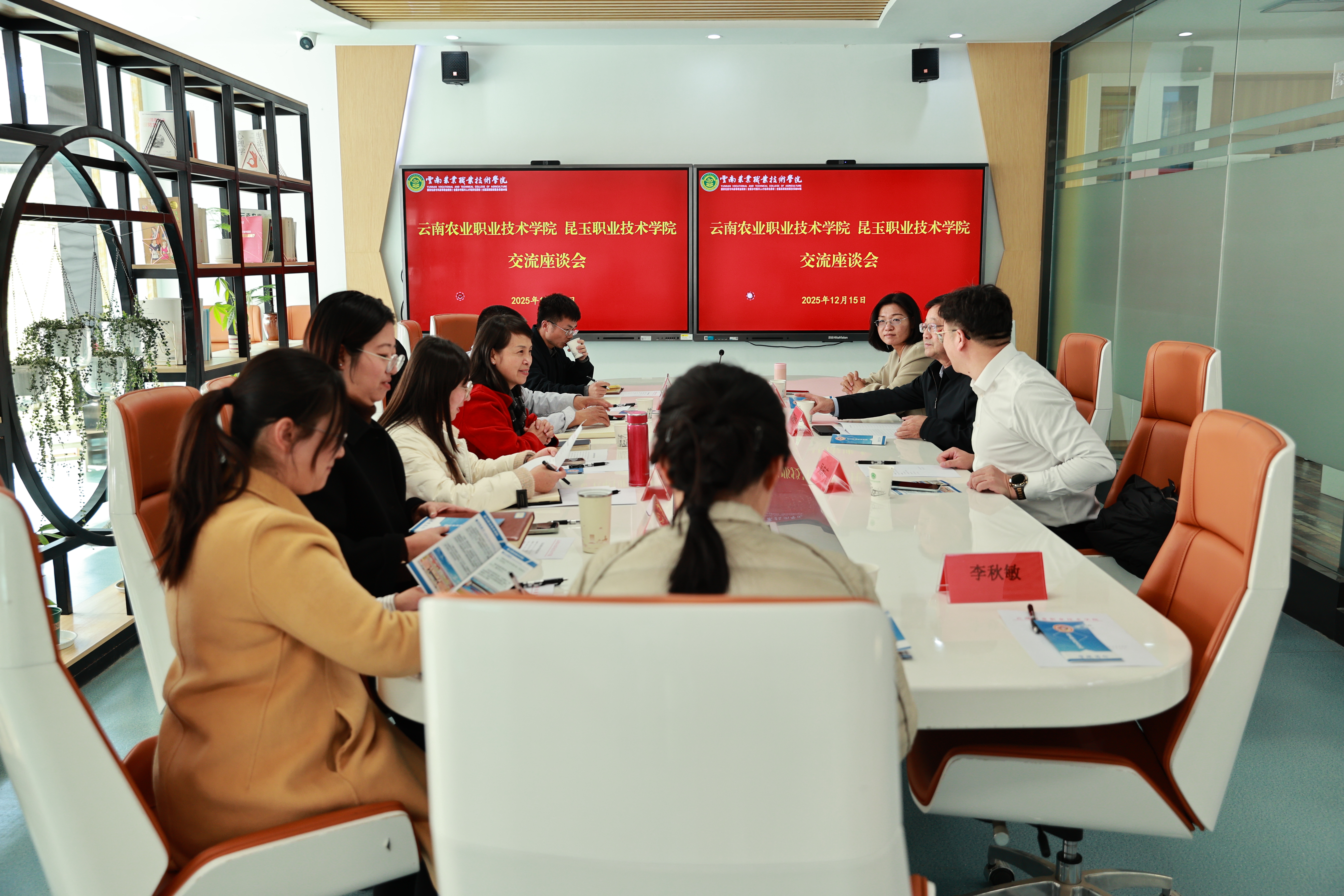 会上,与会人员共同观看了学校宣传片,直观感受学校办学底蕴与发展活力。盛冀萍副校长对冯保生院长一行的到来表示热烈欢迎,并介绍了学校发展历程与办学成就。她指出,伟德官网溯源至1904年创办的云南蚕桑学堂,百余年来深耕农业职业教育领域,在现代农业技术专业建设、实训基地运营以及“岗课赛证”融合育人模式探索等方面成效显著,先后斩获多项国家级、省级荣誉,被誉为“云南农业职业教育的摇篮”。会上,盛冀萍副校长还分享了学校在相关领域的成熟经验与实践案例。