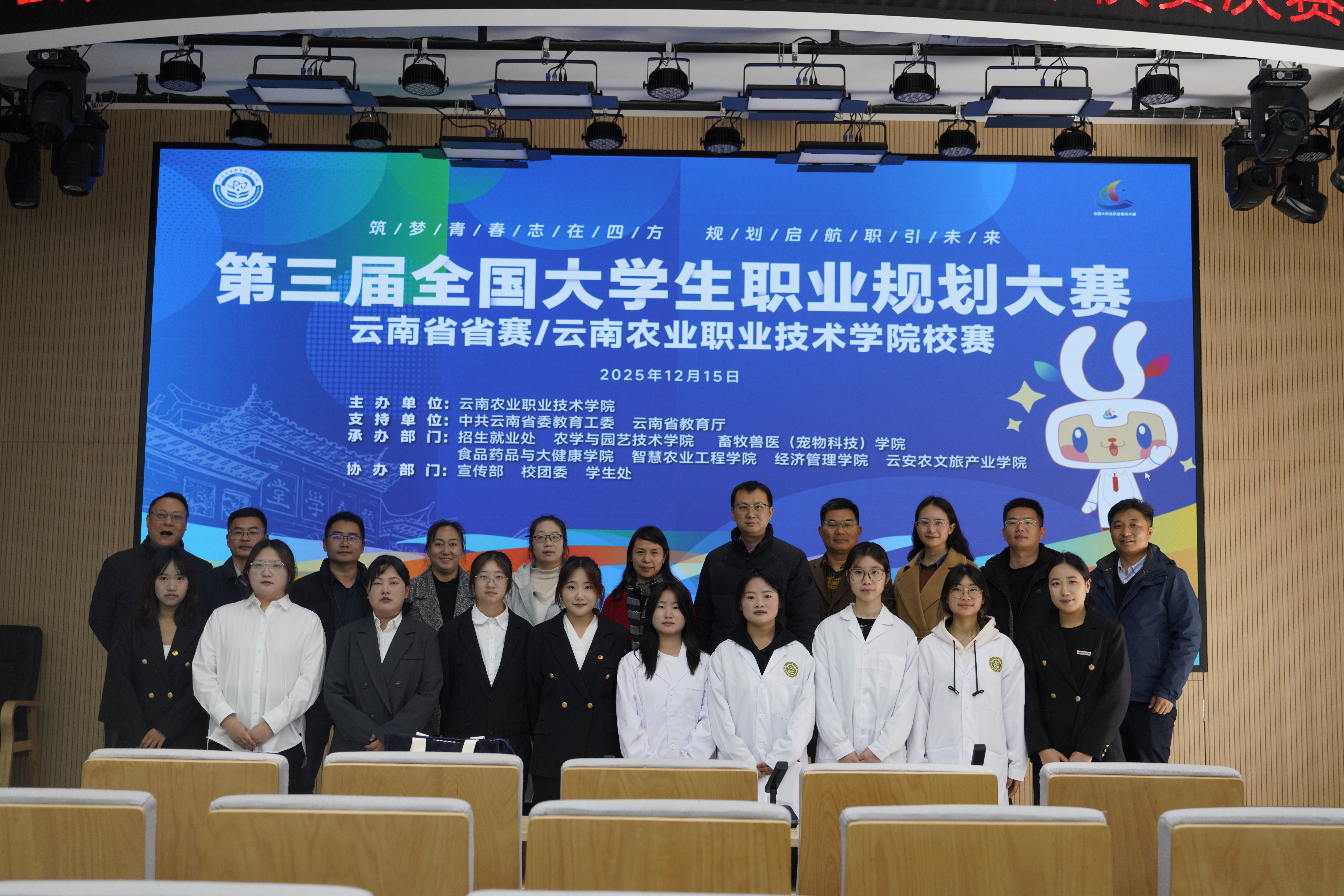 通知中心12月15日,第三届全国大学生职业规划大赛伟德BV1946官网校赛决赛在学校小哨校区综合楼一楼阶梯教室成功举办。本次大赛由学校主办,招生就业处联合农学与园艺技术学院、畜牧兽医学院(宠物科技学院)等7个二级学院共同承办,宣传部、团委、学生处协同举办,以“立足农业特色·规划职业航向”为核心,为全校学子搭建了职业探索与能力展示的优质平台。