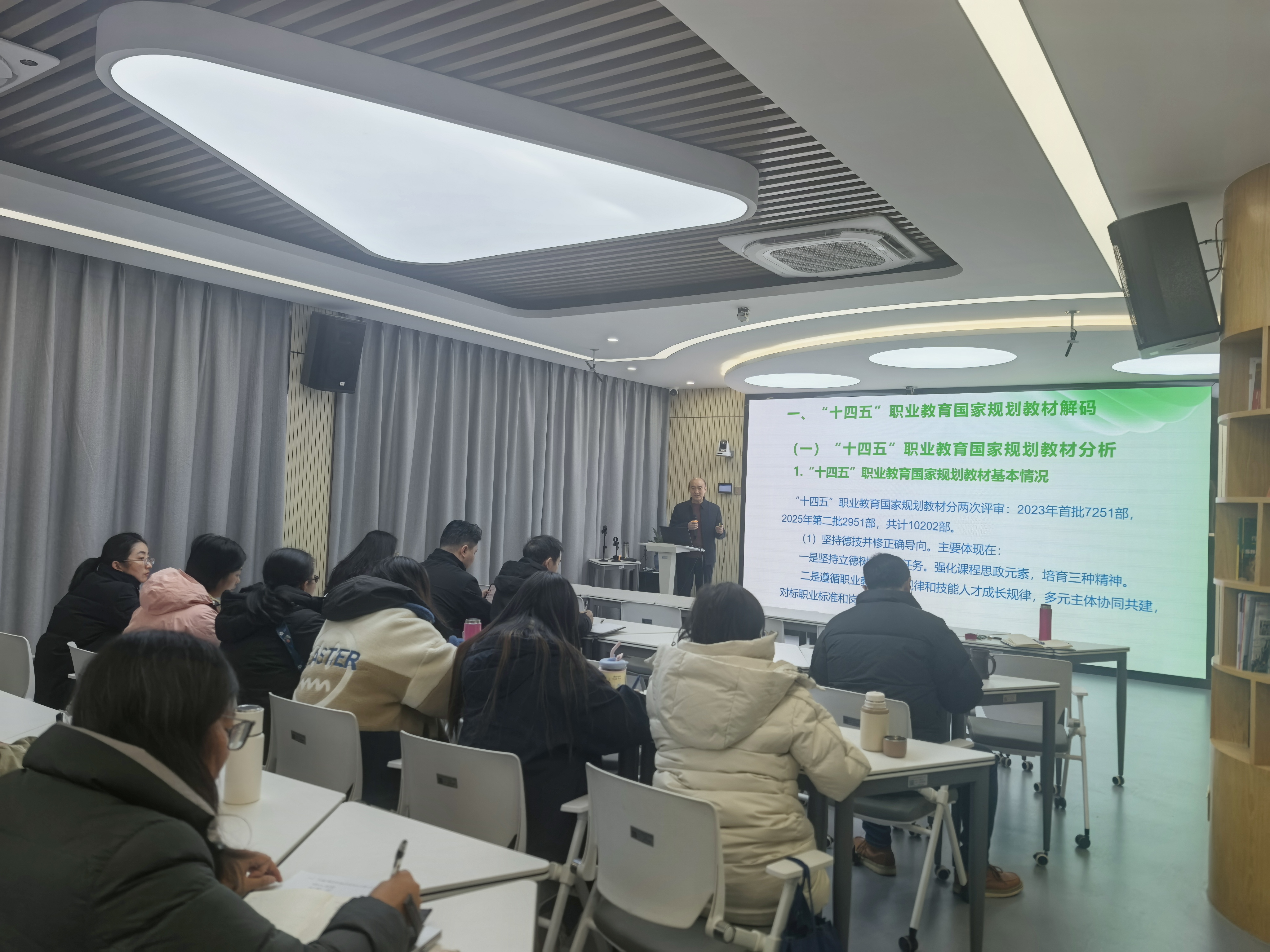 本次培训邀请宋志伟教授作题为《产教融合引领驱动下一流核心课程与新形态教材建设》讲座,聚焦“十四五”职业教育国家规划教材解码、职业教育国家在线精品课程观测指标解读、一流核心项目化课程设计、校级重点课程立项申报解读和校级规划教材立项申报解读等五个方面展开系统讲解。