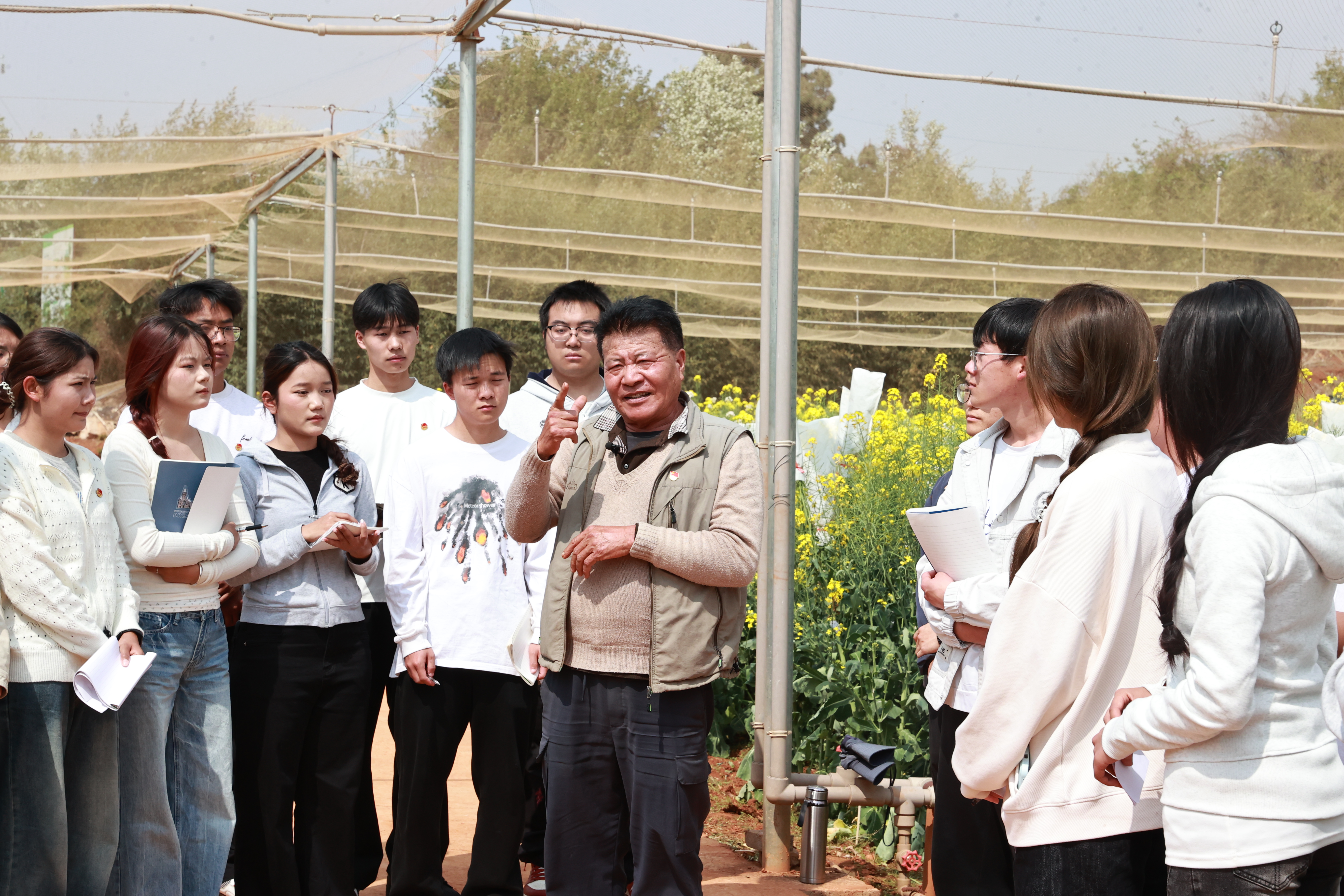 保障国家粮食安全是实现民族复兴伟业的重要根基,也是农业院校肩负的核心使命。本次张桂梅思政大讲堂分课堂紧扣国家战略、贴合学校办学特色、贴近青年成长需求,秉持“让有信仰的人讲信仰”理念,践行“开门办思政课”要求,将思政教育与田间实践深度融合,为学子们上了一堂内涵深刻、生动鲜活的“行走的思政课”。课程助力同学们系好大学生涯的“第一粒扣子”,明确时代责任与历史使命,让大家在理论学习中感悟国之大者的战略分量,在田间实践中体会农人的辛劳与科研的坚守,在榜样事迹中汲取深耕三农的奋进力量,在展望未来中坚定强农兴农、技能报国的志向决心。
