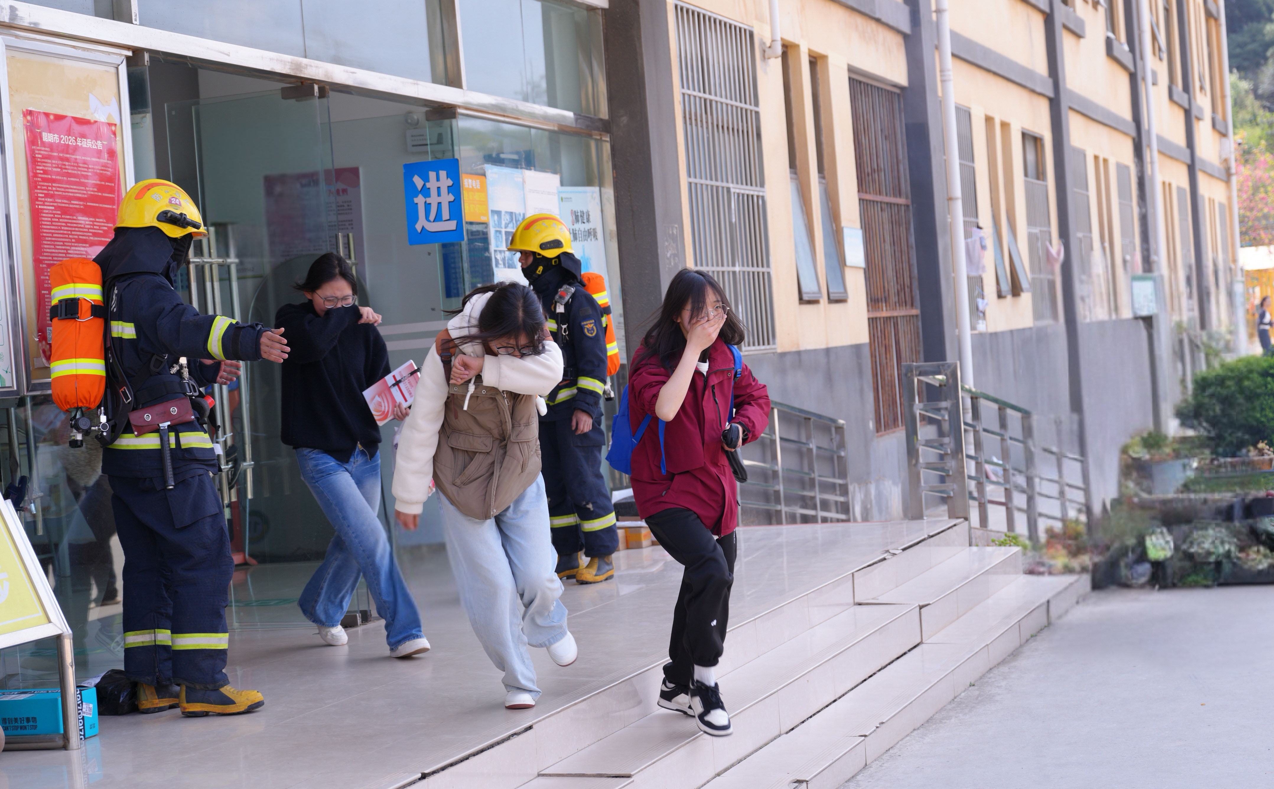 昆明空港经济区消防大队参谋周沫对本次演练活动进行总结点评。他首先对同学们在演练中的迅速反应、有序疏散给予高度肯定,认为此次演练流程规范、组织到位。同时,周沫结合高校校园消防安全特点,向全体师生强调了用电安全的重要性,提醒同学们在日常学习生活中,要严格遵守校园用电规范,不使用违规电器、不私拉乱接电线,时刻警惕消防安全隐患;要主动学习消防安全知识,熟练掌握火灾逃生、自救互救技巧,不断提升对突发消防情况的应对处置能力,做到警钟长鸣、防患于未然。