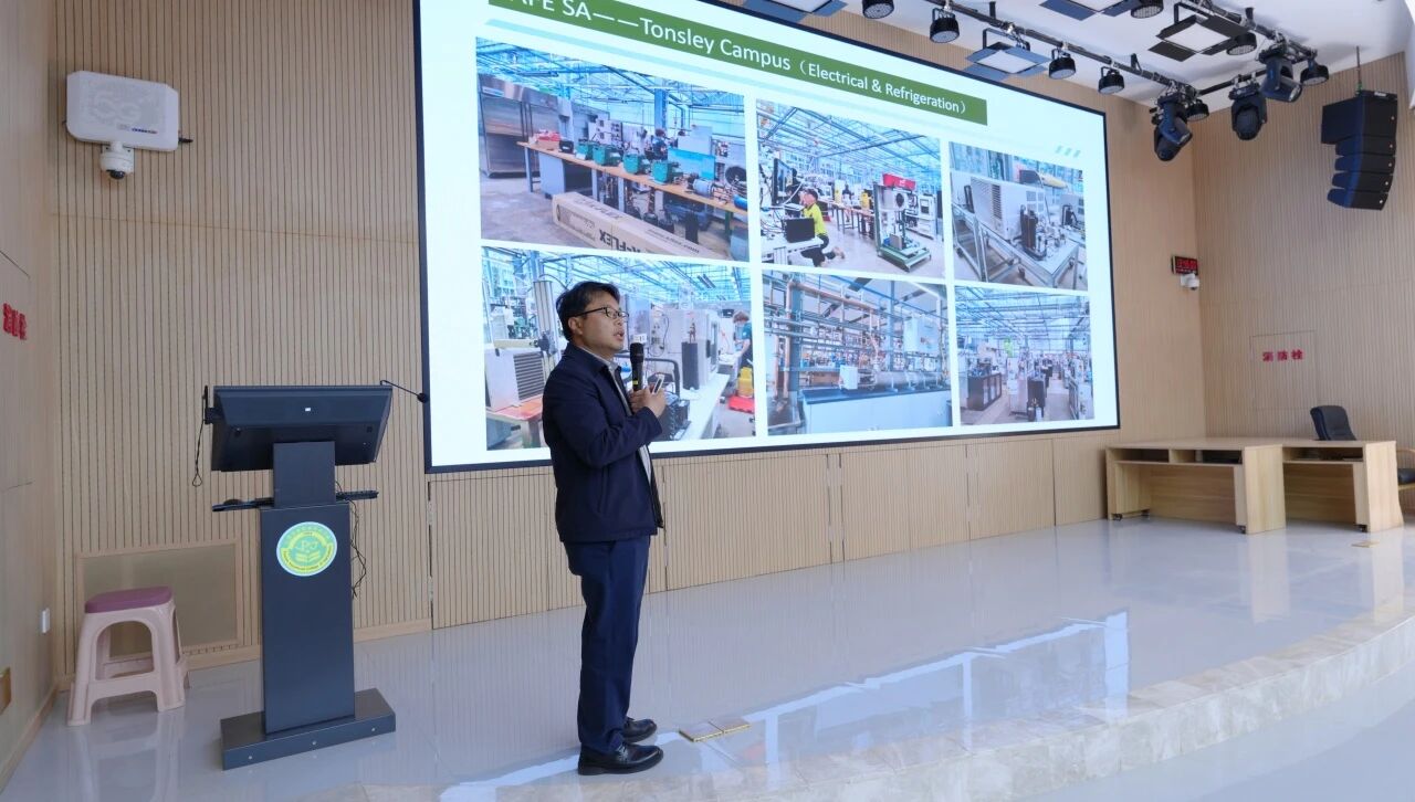 第一期,学校校长陈太安教授围绕“澳大利亚职业教育TAFE体系借鉴与学校高质量发展”作专题分享,立足职业教育类型定位核心要求,结合赴澳大利亚阿德莱德、墨尔本等地实地考察学习成果,全面拆解澳大利亚职业教育资格框架、标准化培训包、行业技能委员会等核心运行机制,为学校借鉴国际先进职教模式、优化办学体系提供了开阔的国际视野与实践参考。