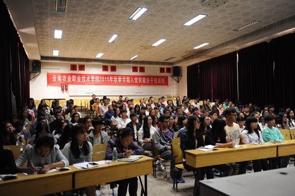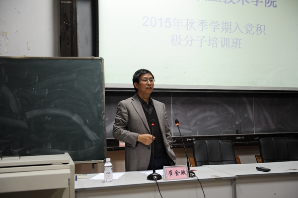 11月9日中午12:30分,伟德官网2015年秋季学期入党积极分子培训班在茭菱校区如期开班,来自经济管理学院选送的162名入党积极分子和直属支部的老师参加培训。本次培训班邀请了在党建工作和党建理论方面有着丰富经验的领导、老师主讲,第一讲由党委书记崔金赋主讲。