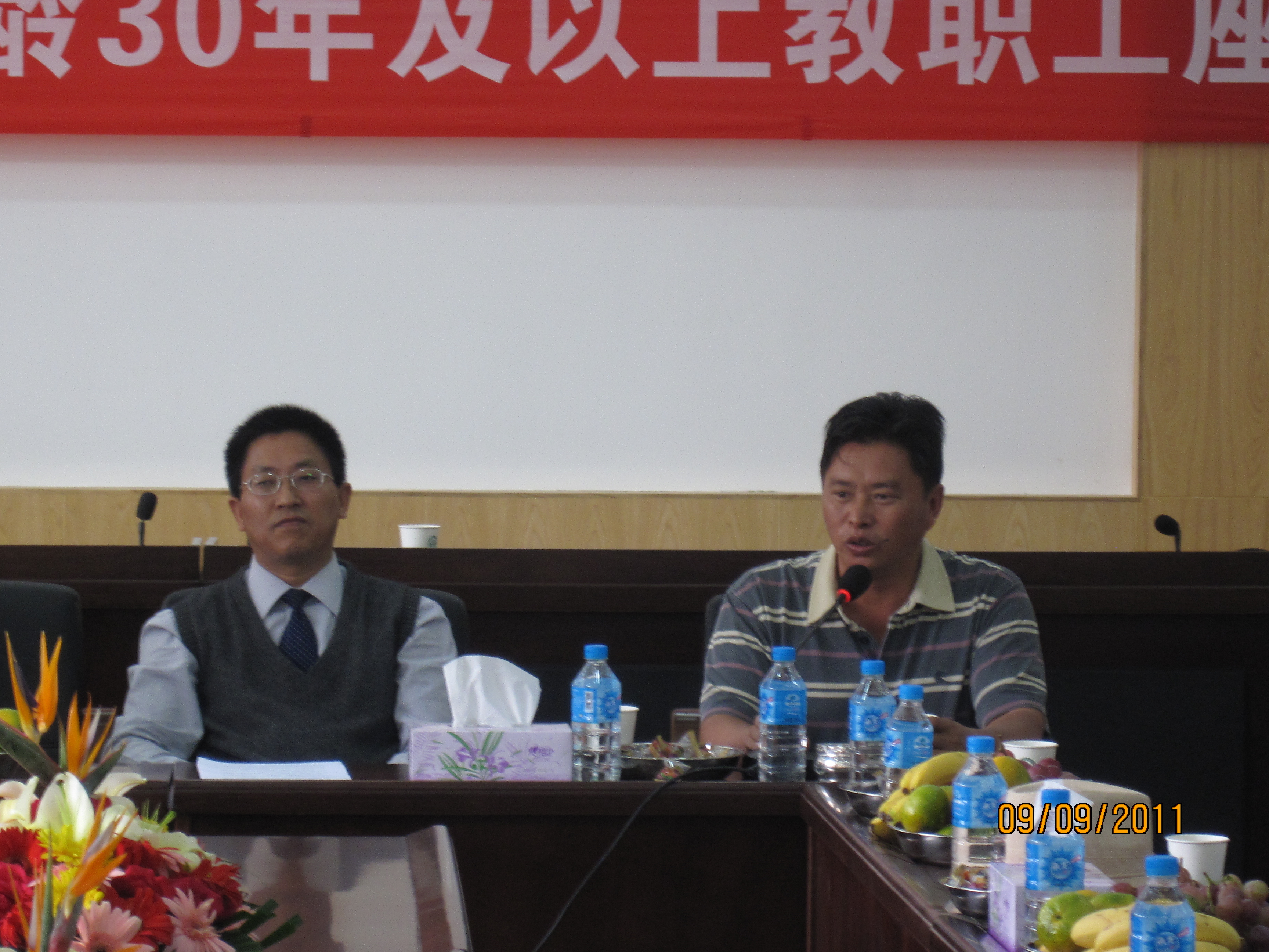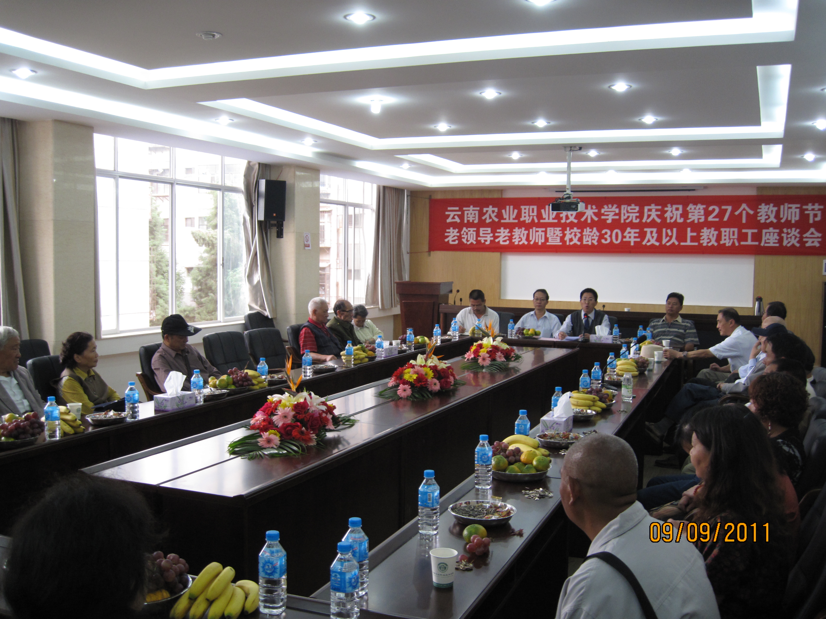 原云南省农业学校时来书记谈到,国家非常重视教育事业,专设一个教师节,就是希望我们更热爱教育事业!学院走过了许多艰辛,学院也一天天发展壮大,我们很高兴!说明学院领导比我们当初付出得更多,感激现任领导使学院日新月异,“青出于蓝而胜于蓝”!希望学院严格要求教师,在关心爱护教师的同时更要提高教师的学识和素养,只有高素质的教师才能培养高素质的人才!原云南省农业学校李铸声校长、陈校长感言,很高兴欢度自己的节日,自己与教育有缘分,一辈子搞了35年教育,很有感情;经常有学生来看望,很有成就感!教师虽然清贫辛苦,但却是天底下最光辉的事业!要抓好教师队伍建设,要抓好学院基本建设,要帮助农村农民增产增收!