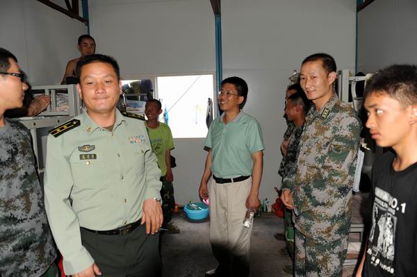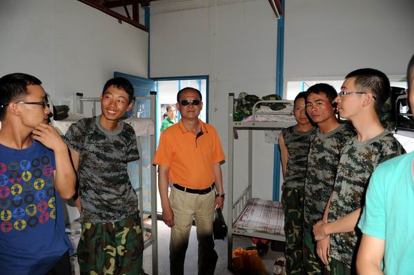 在昆明干部培训学院一大队冯大队长、司马政委、熊副大队长的陪同下,崔书记、何副院长、俞副院长等领导深入军训操练场地、营房看望慰问师生。询问大家军训是否辛苦,训练成效如何,生活安排是否到位?军训师生感受到学院领导的关怀、关心,倍感温暖和鼓舞。大家一致表示要发扬一不怕苦二不怕累,要继续认真操练,认真向教官学习,一切行动听从指挥,以优异的成绩和过硬的作风向学院领导汇报!(党委宣传部供稿)