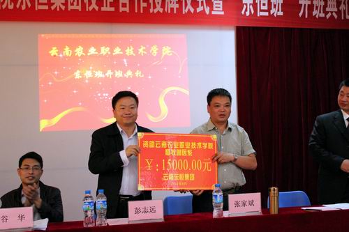 随后,东恒集团向学院捐赠了助学金,并授予畜牧兽医系“人才培养基地”牌匾。