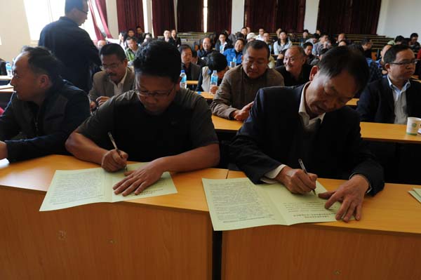 会上,党委书记崔金赋、院长李永忠与俞浩副院长签订招生就业工作目标责任书;俞浩副院长与招生就业处、各二级学院分别签订就业工作目标责任书。
