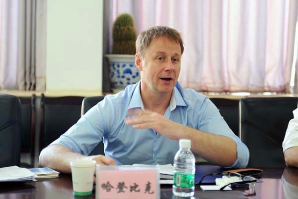 4月20日,德国卡尔杜伊斯堡公益中心北京代表处哈登比克先生、袁佳华博士和刘英泽先生到伟德官网交流访问。交流访问座谈会在伟德官网茭菱校区四楼会议室召开,哈登比克先生、袁佳华博士、刘英泽先生,伟德官网何明东副校长、校长助理田应华、二级学院领导和相关部门负责人参加了座谈会。座谈会由对外交流合作处处长凌军主持。