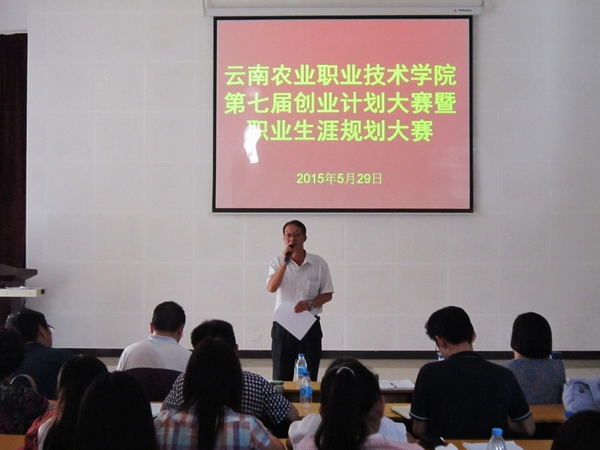 伟德官网第七届创业计划大赛暨第五届职业生涯规划大赛于2015年5月28日在小哨行政楼阶梯教室举行, 俞浩副院长、招生就业处潘彦维处长、学生工作处周诚处长、及各二级学院指导教师等担任评委。