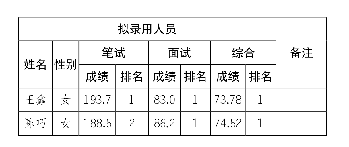 2019年伟德BV1946官网公开招聘工作人员中,王鑫和陈巧2名考生因孕期结束后按照要求进行了体检。根据笔试、面试、考察及体检结果,按照有关规定,经研究,同意王鑫和陈巧2人为拟录用人员,并公示如下: