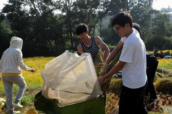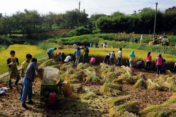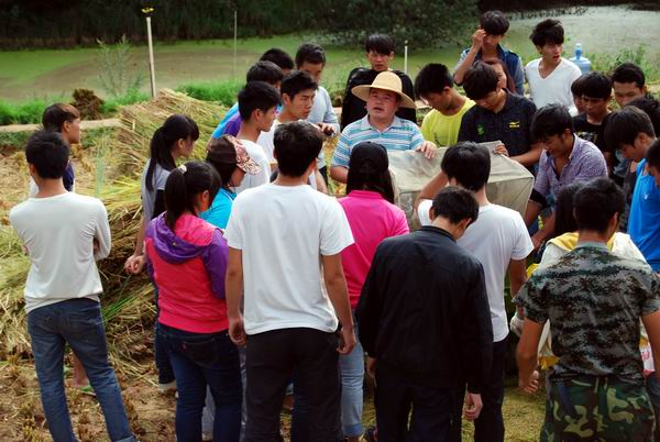 2013年9月25日,在园艺与园林工程系主任唐世凯教授的技术指导下,班主任廖承菌老师带领13级园艺与园林工程系农业水利技术专业同学开展生态水稻生产的收割实训。实训中,唐世凯老师系统地向同学们讲解了水稻收割技术流程,并纠正了同学们在实训中存在的偏差。
