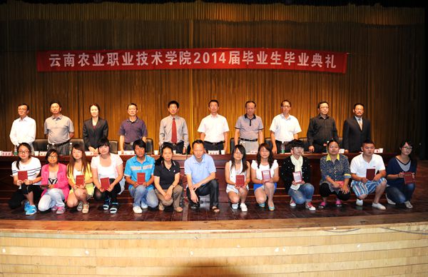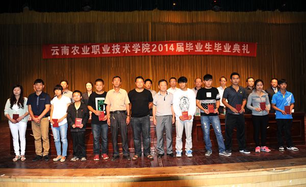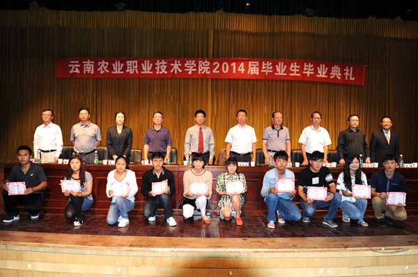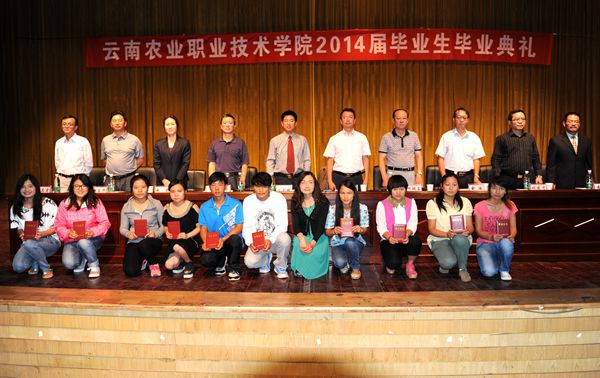 在雷鸣般的掌声中,学校党政领导集体为2014届毕业生代表颁发了毕业证书,为2014届省级和校级优秀毕业生代表颁发了荣誉证书。并一同各二级学院的领导与毕业生代表合影留念。