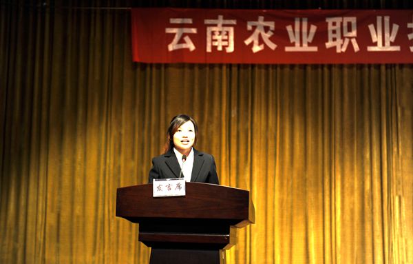 毕业生代表、在校生代表先后发言。毕业生代表在发言中满怀深情而依依不舍地回忆了毕业生三年的美好时光,感到辛苦而快乐,充实而美丽,感谢父母养育之恩!牢记母校的培养之恩!铭记老师的教导之情!并表示毕业后将继续学习、拼搏,发扬学校“耕道养德 理想 开拓“的校训精神,时刻铭记自己是农职人。发言后代表毕业生向主席台领导,向台下的各位老师行鞠躬礼,再次感谢母校,感谢领导和各位辛勤培育的老师。