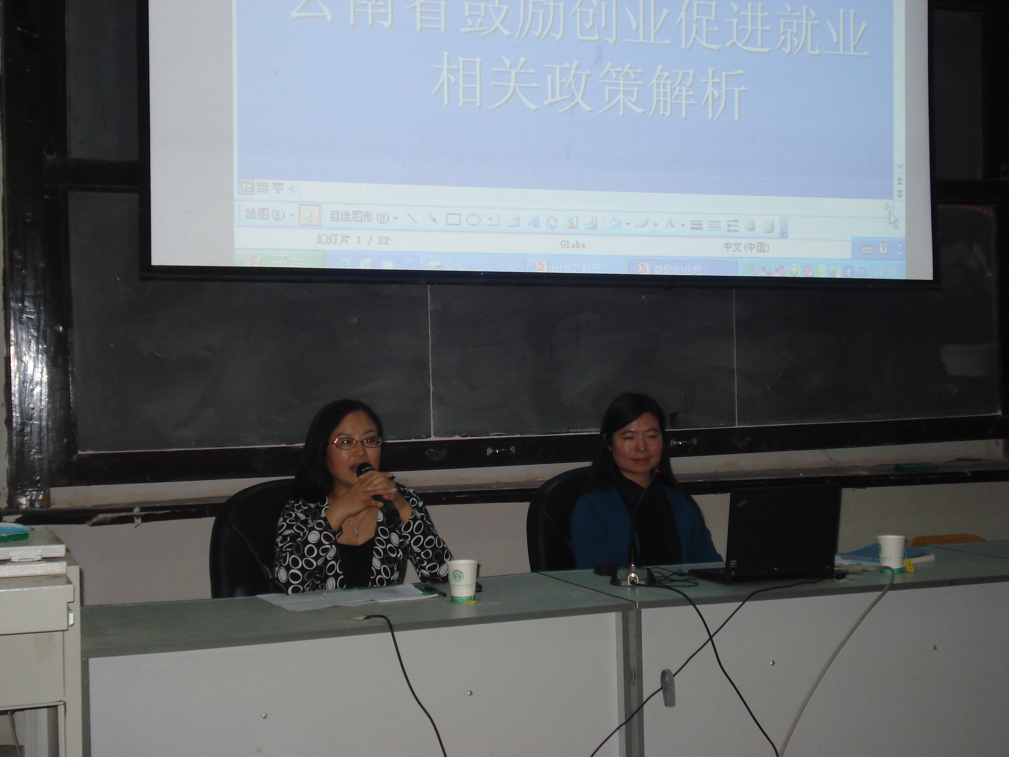 晏副局长先就创业之前的准备进行梳理。她从创业的意义出发鼓励青年大学生都应释放生命的潜能,实现创业的梦想。接着从心态、素质能力、思路、创业专业知识、管理知识、寻求创业指导机构帮助等方面一一解析创业所需要准备的要素。从专业的角度为我院同学解析创业。另外,作为制定云南省鼓励创业政策的参与者,晏副局长详细解读了我省出台的关于鼓励就业创业方面的政策及法律。并有针对性的把与大学生创业有关的政策进行仔细宣讲,为我院同学现场答疑解惑,使之走出政策误区。