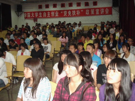 2011年4月13日晚7点半,伟德BV1946官网大学生自主创业“贷免扶补”政策宣讲会在茭菱校区阶梯教室成功召开。此次宣讲会招生就业处邀请到云南省人力资源和社会保障厅就业局副局长晏淼为我院同学做精彩报告。报告会由招生就业处潘处长主持,潘处长首先对晏淼局长的到来表示热烈,并希望广大同学能认真听取宣讲会从中获得启发。晏副局长从创业准备以及云南省鼓励大学生创业“贷免扶补”政策解读两个方面进行了宣讲。