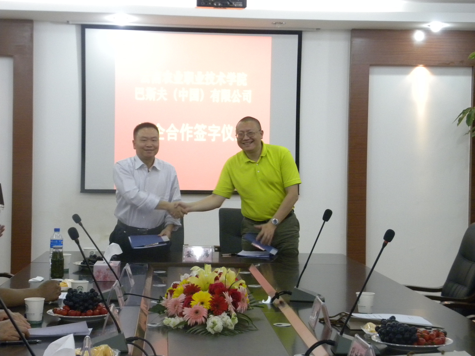伟德BV1946官网院长彭志远与巴斯夫(中国)有限公司西南片区经理张建辉分别代表校企双方签订了校企合作协议书。随后双方共同就校企合作的模式及相关专业的设置等进行了探讨和交流。