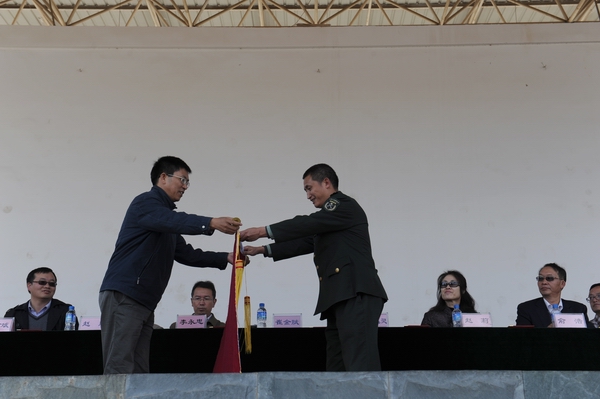 表演结束后,党委书记崔金赋代表学院向昆明民族干部学院一大队赠送了题为“武士为师传军旅宝典,新生为徒学人生真谛”的锦旗,表达了伟德官网师生对昆明民族干部学院一大队全体官兵的崇高敬意和衷心的感谢。副院长军训团副政委俞浩宣读了军训优秀学员名单,对军训成绩优秀、表现突出的学员予以表彰,学院领导为优秀学员颁发了荣誉证书。随后,畜牧兽医学院14级农检二班学生杨程同学代表全体参训学生发言。他表示军训磨砺出了同学们坚强的意志、钢铁般的纪律和健康向上的决心,同学们将用实际行动书写奋斗的意义,让青春无憾。紧接着,昆明民族干部学院一大队政治委员司马迅灵同志讲话。他表示对同学们十五天的成绩、汇报表演感到欣慰,不是军人胜似军人的风姿表明同学们圆满完成了军训任务。