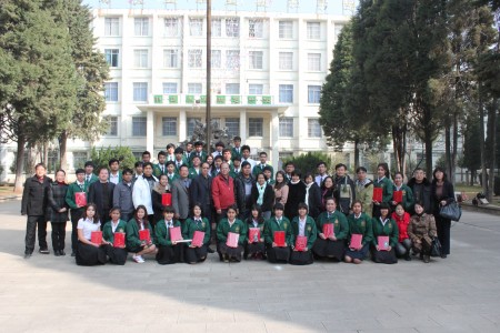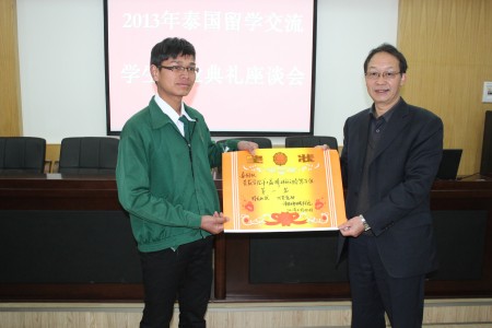 凌军处长汇报了2013年38名泰国留学生在我院学习、生活的情况,并表示全部留学生学习努力,成绩优秀,予以结业。泰国留学生代表黎丰轩同学用PPT发言,他介绍了38名留学生在学院两个校区经历的短暂、平凡而又紧张、活泼的学习和生活,汇报了游览考察大理丽江等地的情况,并向学院领导和老师表示最诚挚地感谢。之后,泰国留学生表演了小合唱云南民歌《月亮升起来》,展示了他们在校期间学习的才艺。学院领导和任课教师向他们颁发了在伟德BV1946官网的结业证书。