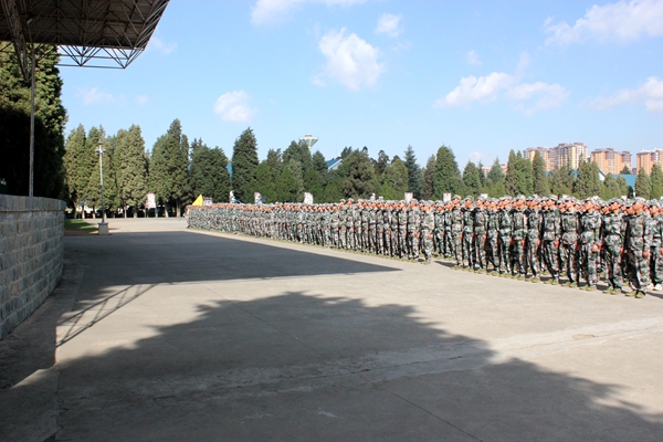 昆明民族干部学院一大队司马迅训灵为参训学生作动员讲话。他首先介绍了昆明民族干部学院的悠久历史和军队作风。司马政委指出,大学生军训是贯彻落实《国防教育法》的重要体现,也是大学生综合素质发展的必然要求。昆明民族干部学院的前身是昆明陆军学院,有着优良发展历史及光荣传统,为把本次军训打造成样板工程,学院特抽调来自各部门的精兵强将担任教官。经过半个月的艰苦训练,相信全体参训学员一定能交出一份优秀的答卷。