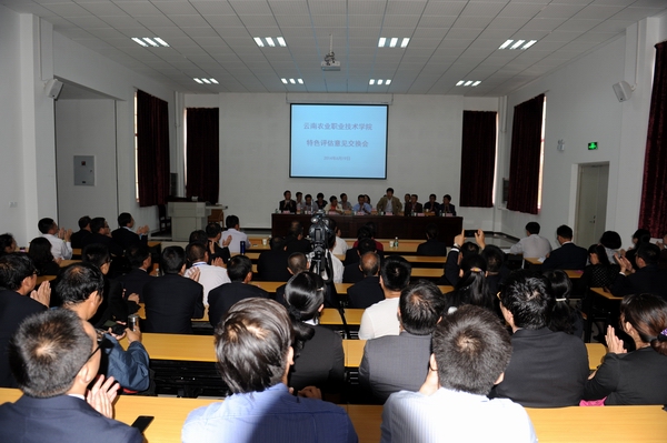 2014年6月19日上午9:30,伟德官网在小哨校区新办公楼阶梯教室召开特色评估工作反馈会。云南省农业厅副厅长孙海清,云南省教育厅高教处处长、省高等教育评估中心主任王永全,云南省高职院校特色评估专家组组长云南林业职业技术学院院长马洪军教授、副组长云南热带作物学院院长宋国敏教授、以及专家组成员昆明医科大学杨凌、云南民族大学职业技术教育学院董兴、云南农业大学职业与继续教育学院院长雷兴刚、西南林业大学园林学院樊国盛、云南能源职业技术学院蔡冰副院长、高职院校特色评估项目管理员、云南大学高教院腾文忠书记、项目观察员、云南省高教评估中心副主任刘康宁,学校党委书记崔金赋、院长李永忠、党委副书记赵刚、副院长何明东、副院长赵莉、副院长俞浩、院长助理田应华,以及学校所有中层以上领导干部出席会议。反馈会由评估专家组副组长宋国敏院长主持。